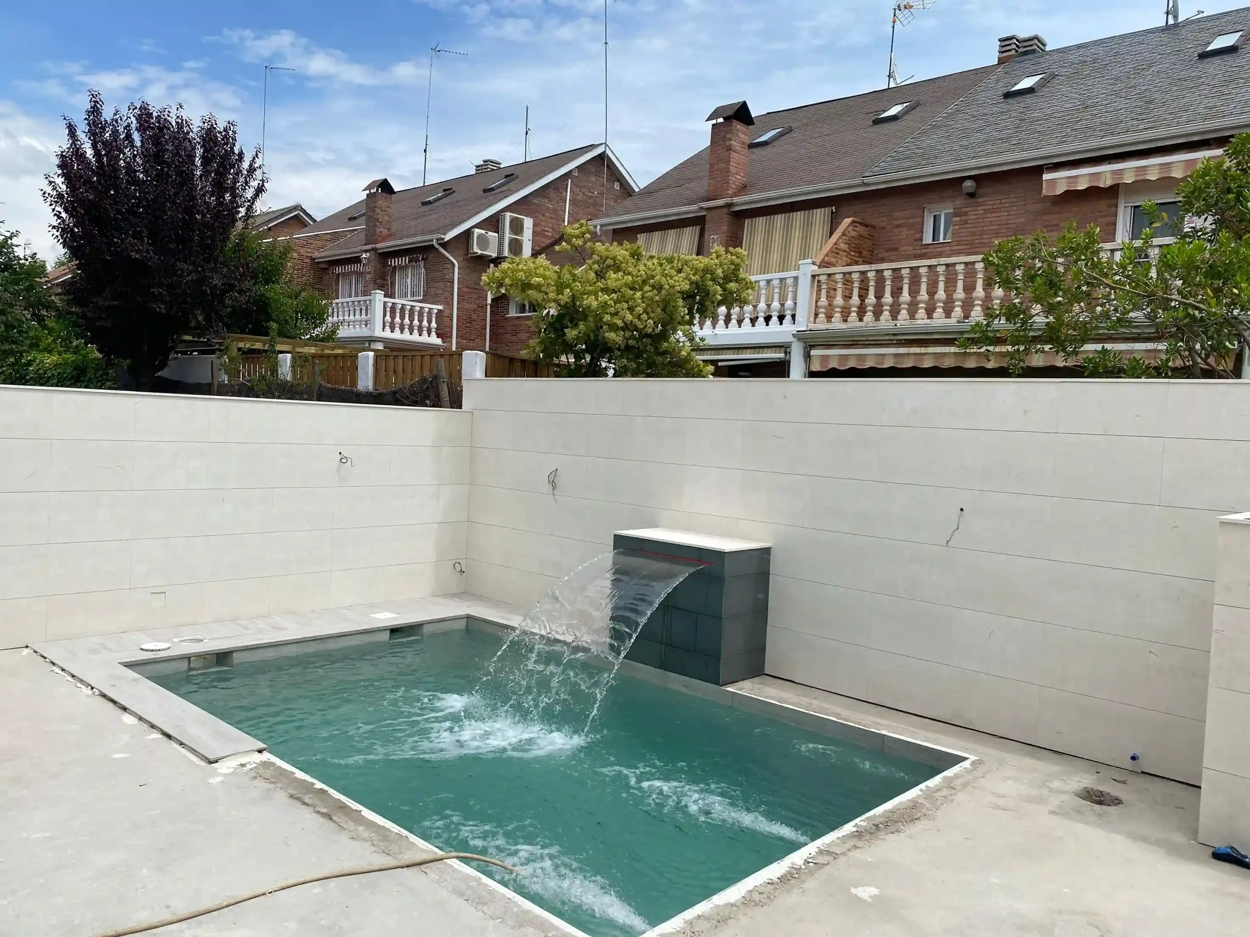 El terreno era reducido pero se encontraba en condiciones óptimas para iniciar la obra. Gracias a la buena planificación, logramos aprovechar al máximo los 150 m² de parcela, integrando la piscina sin comprometer la funcionalidad del espacio exterior.
