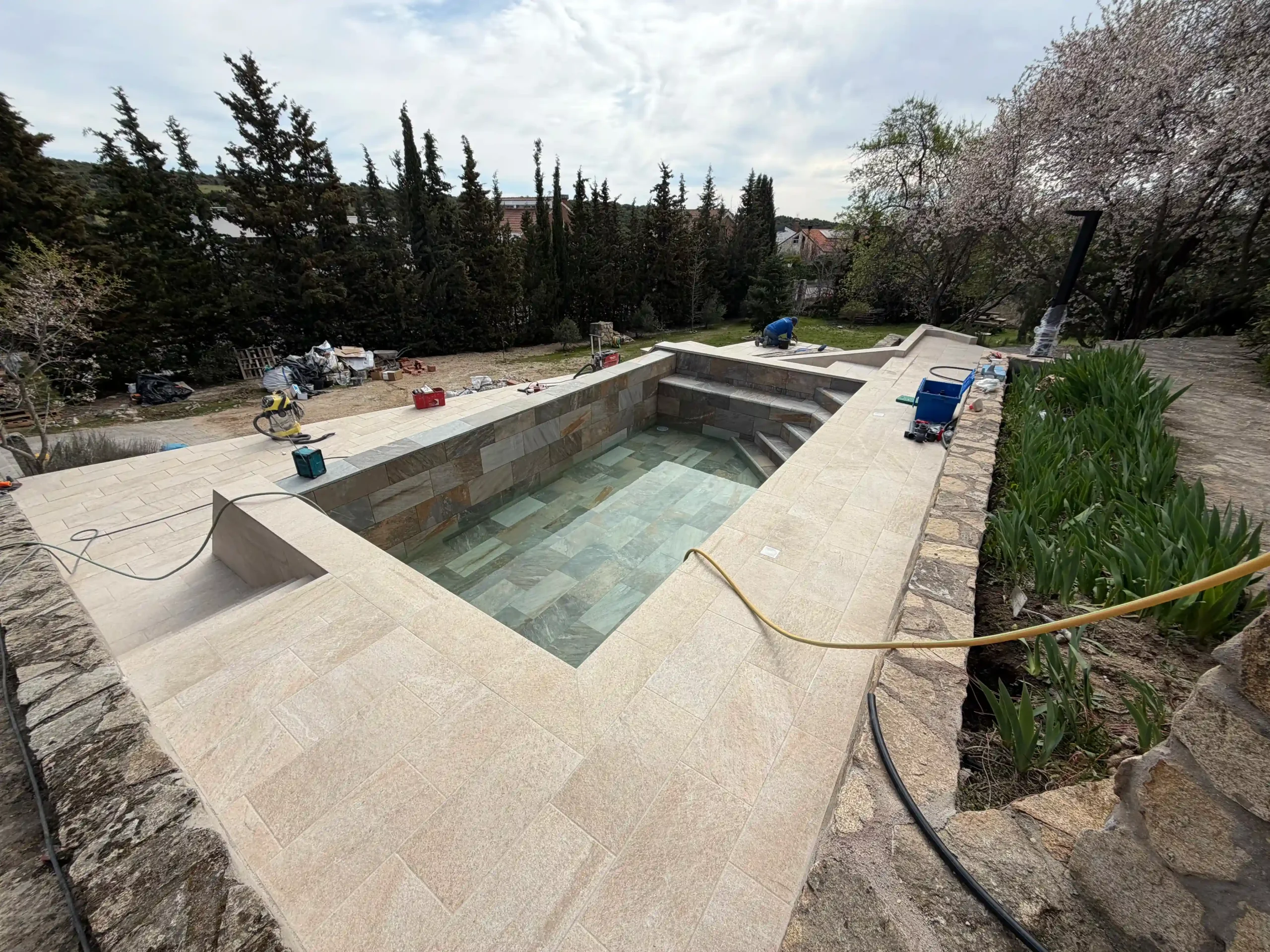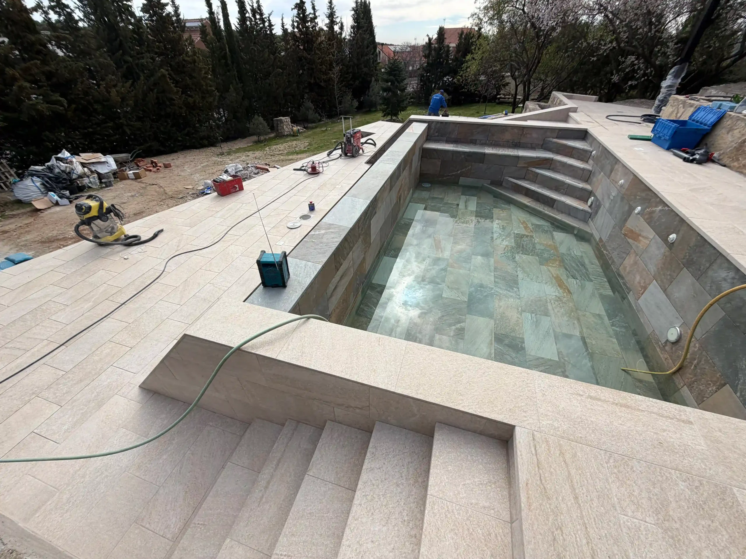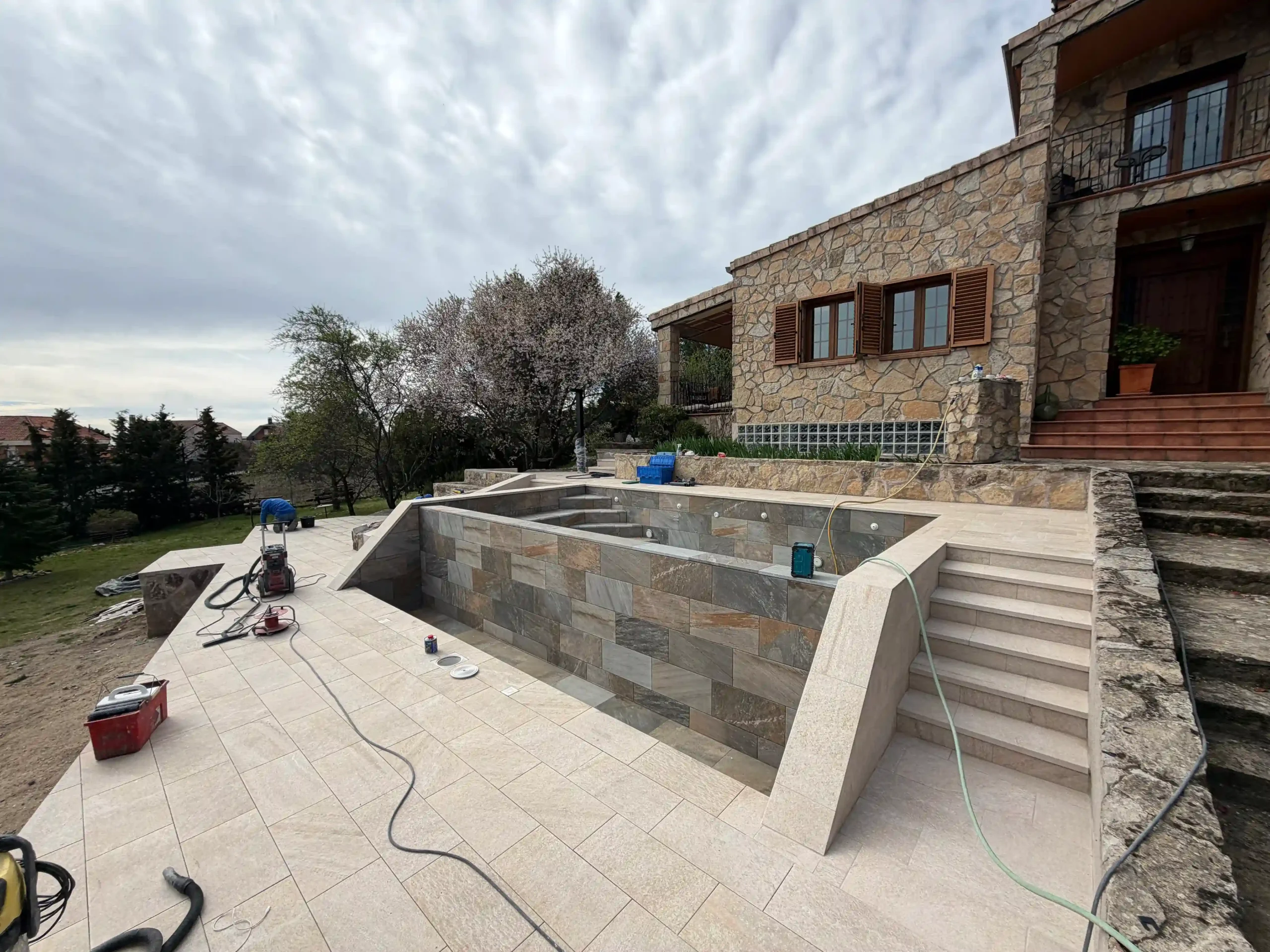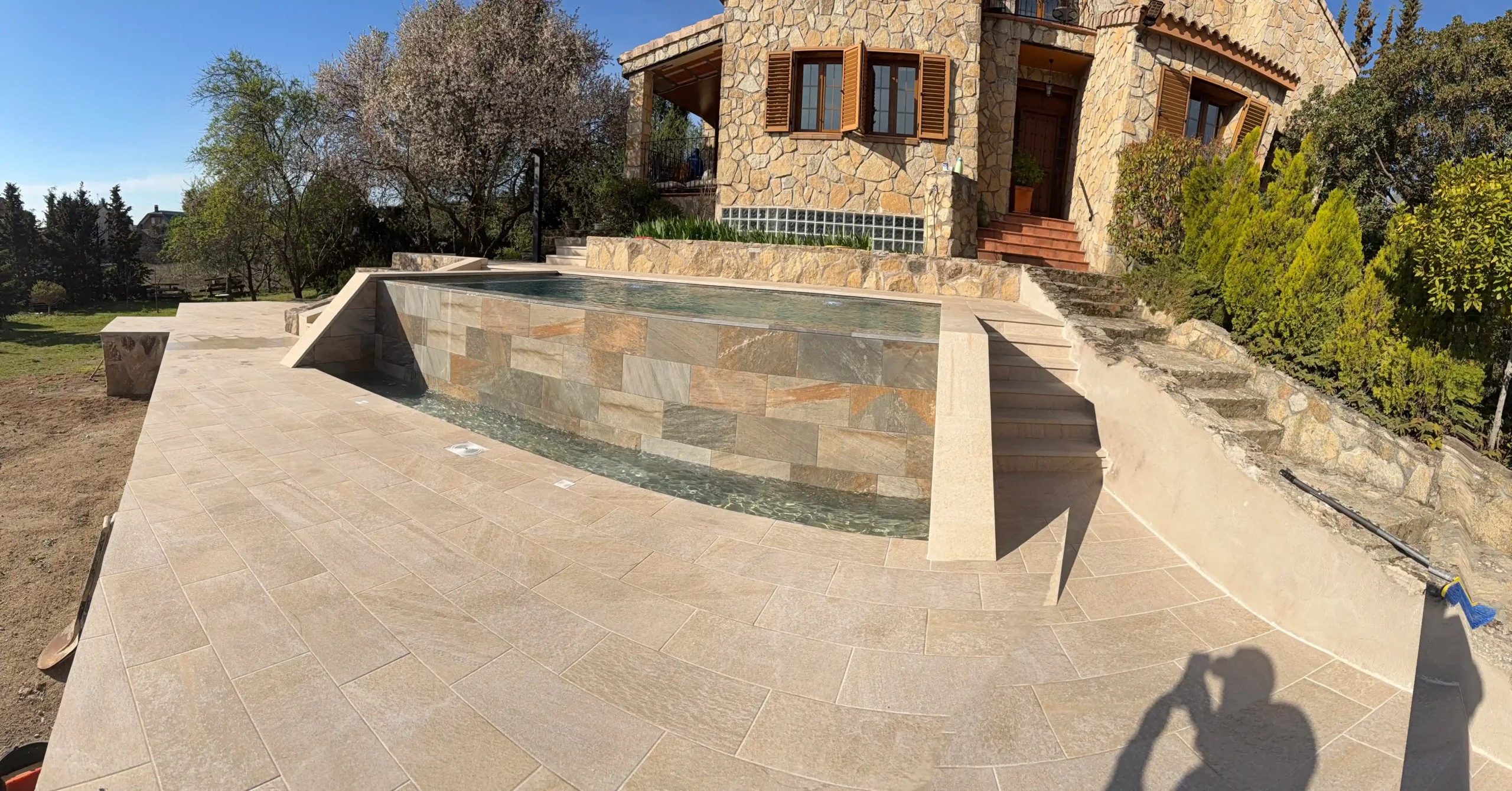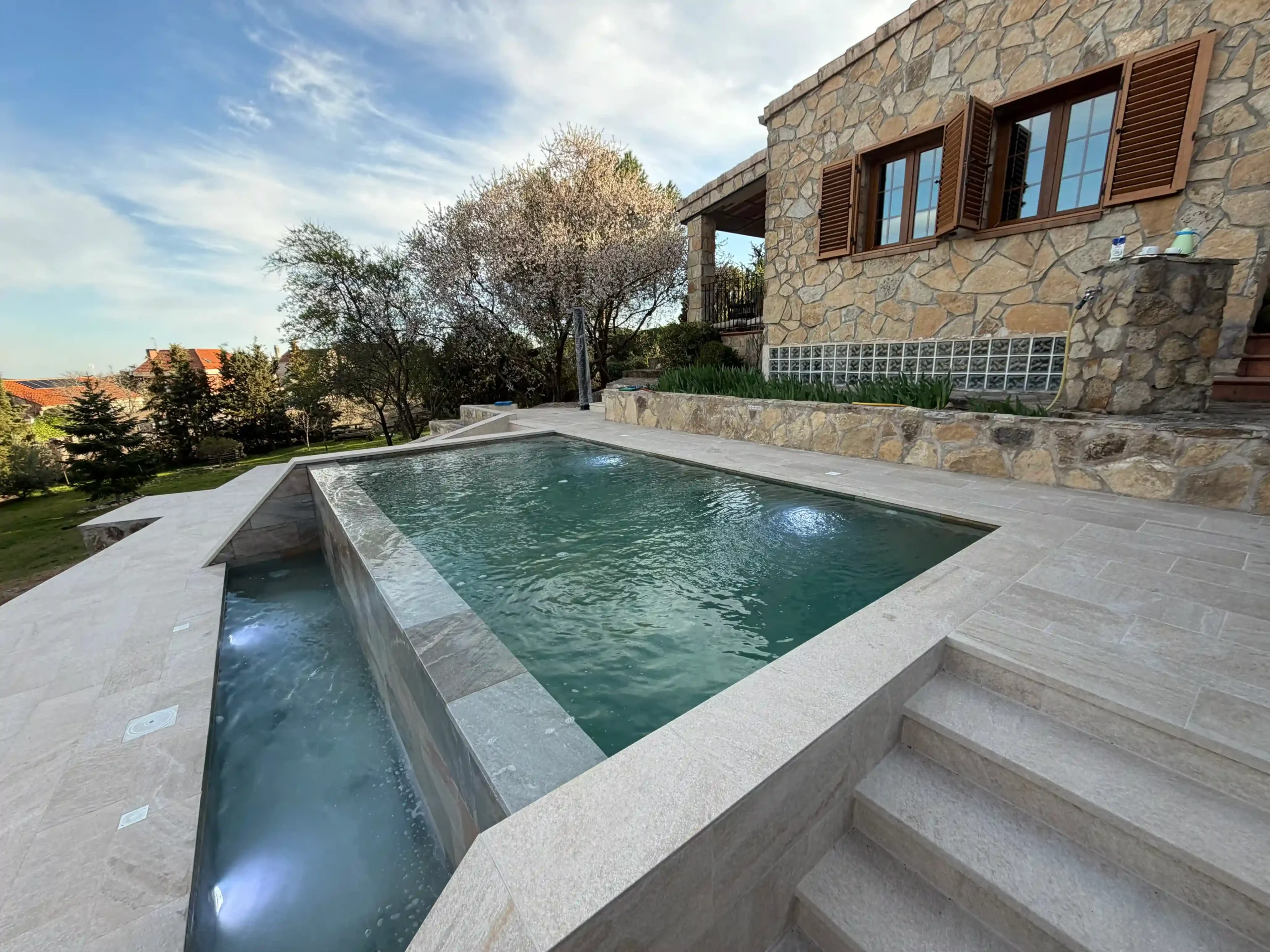 El punto de partida era claro: un terreno con desnivel, un jardín sin definir y una vivienda que pedía integración, continuidad y diseño. Aquí es donde entra EPOXGHERA®. No para construir una piscina… sino para dar sentido a todo el conjunto.