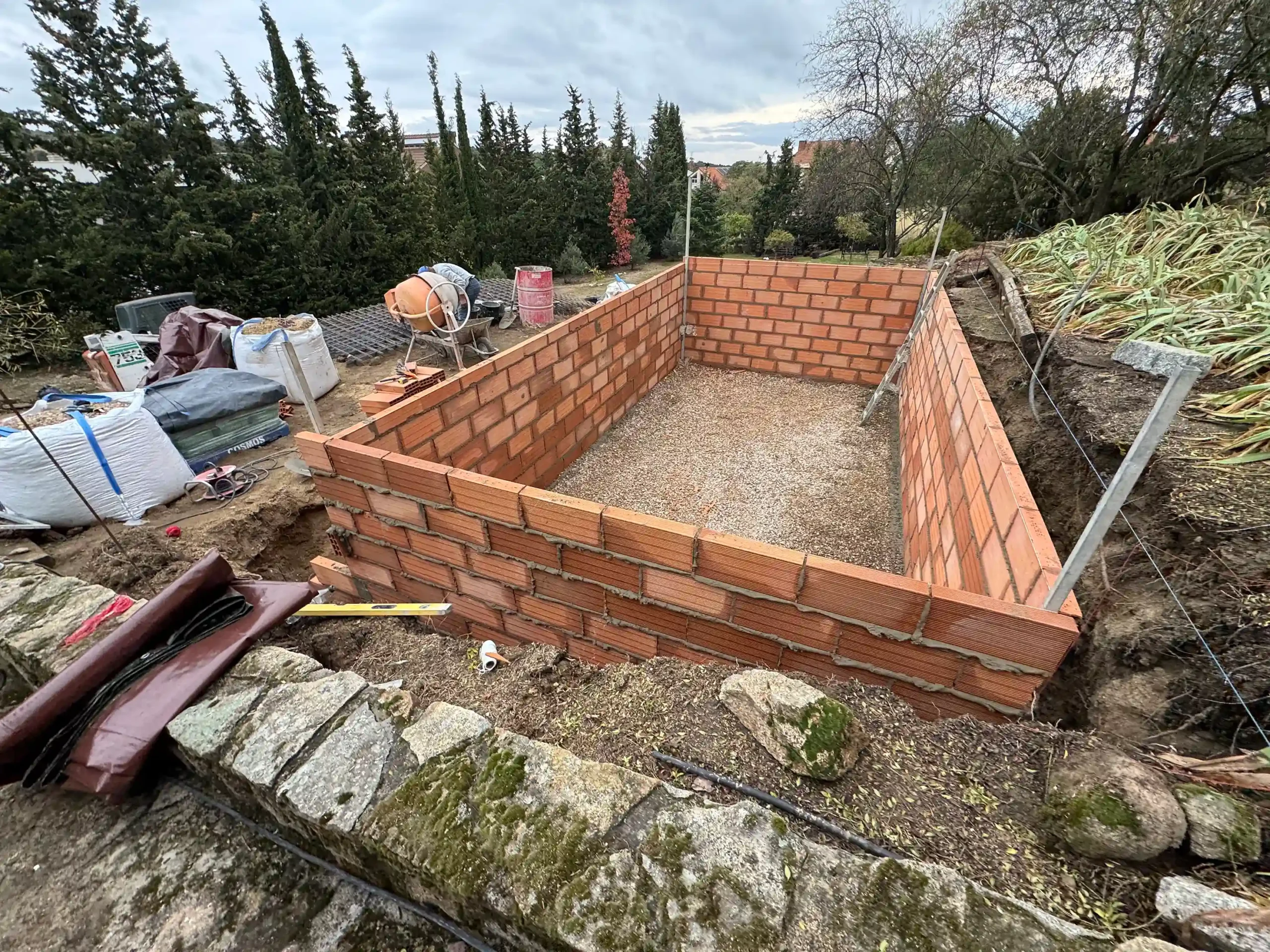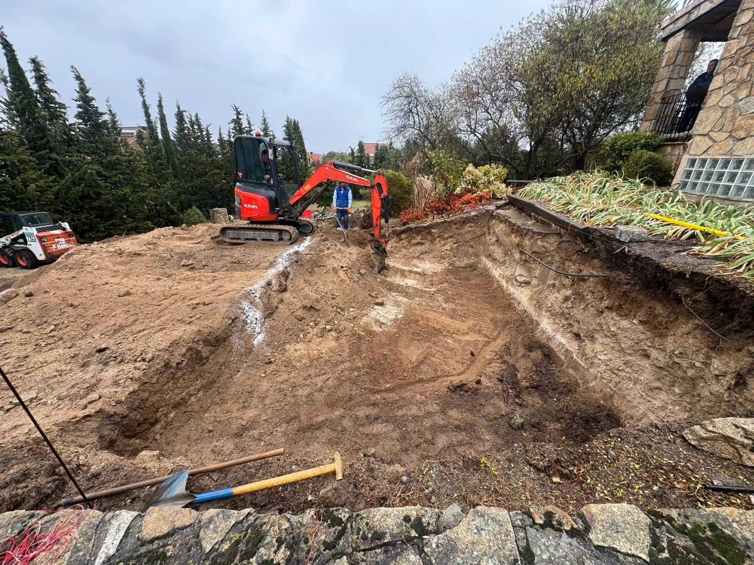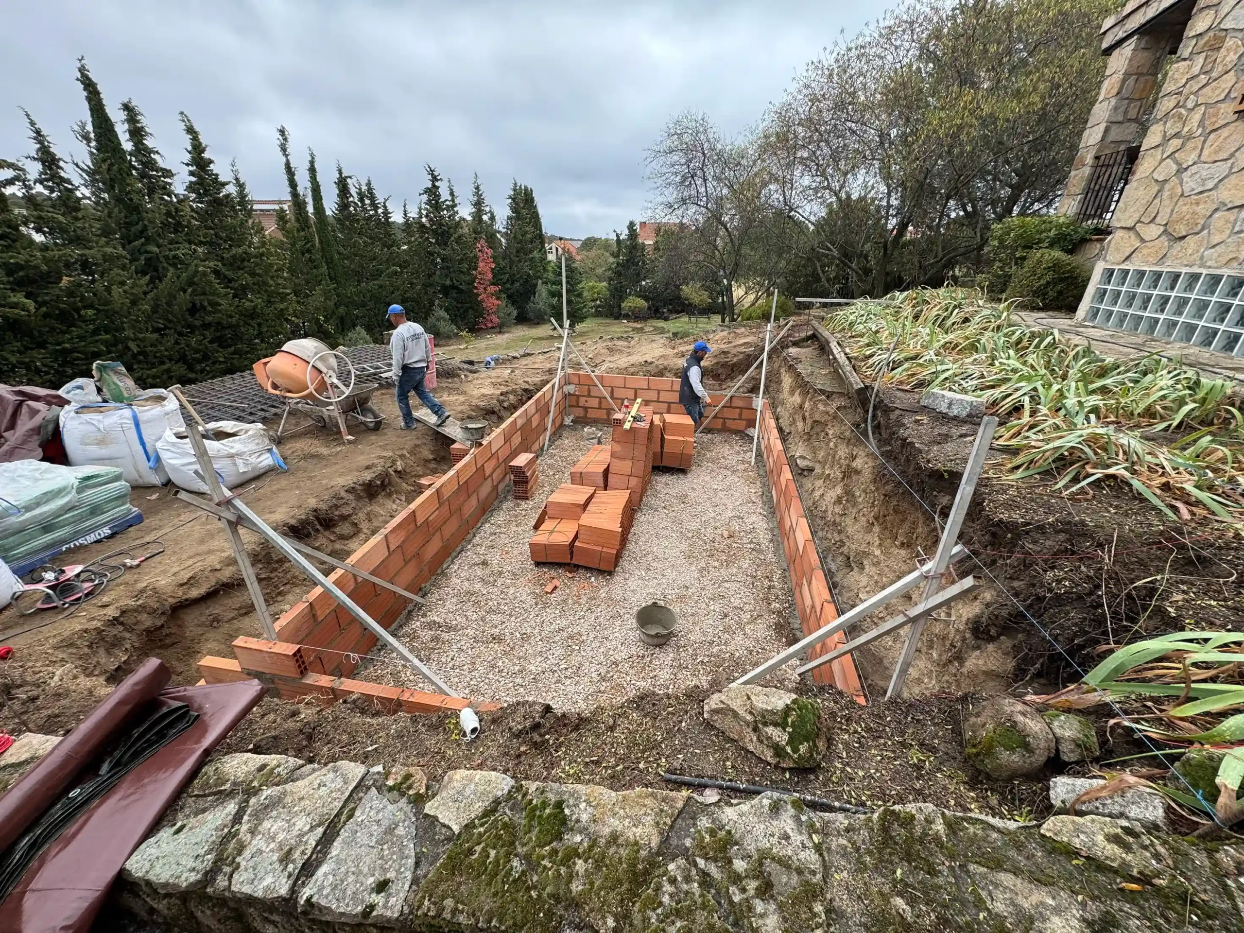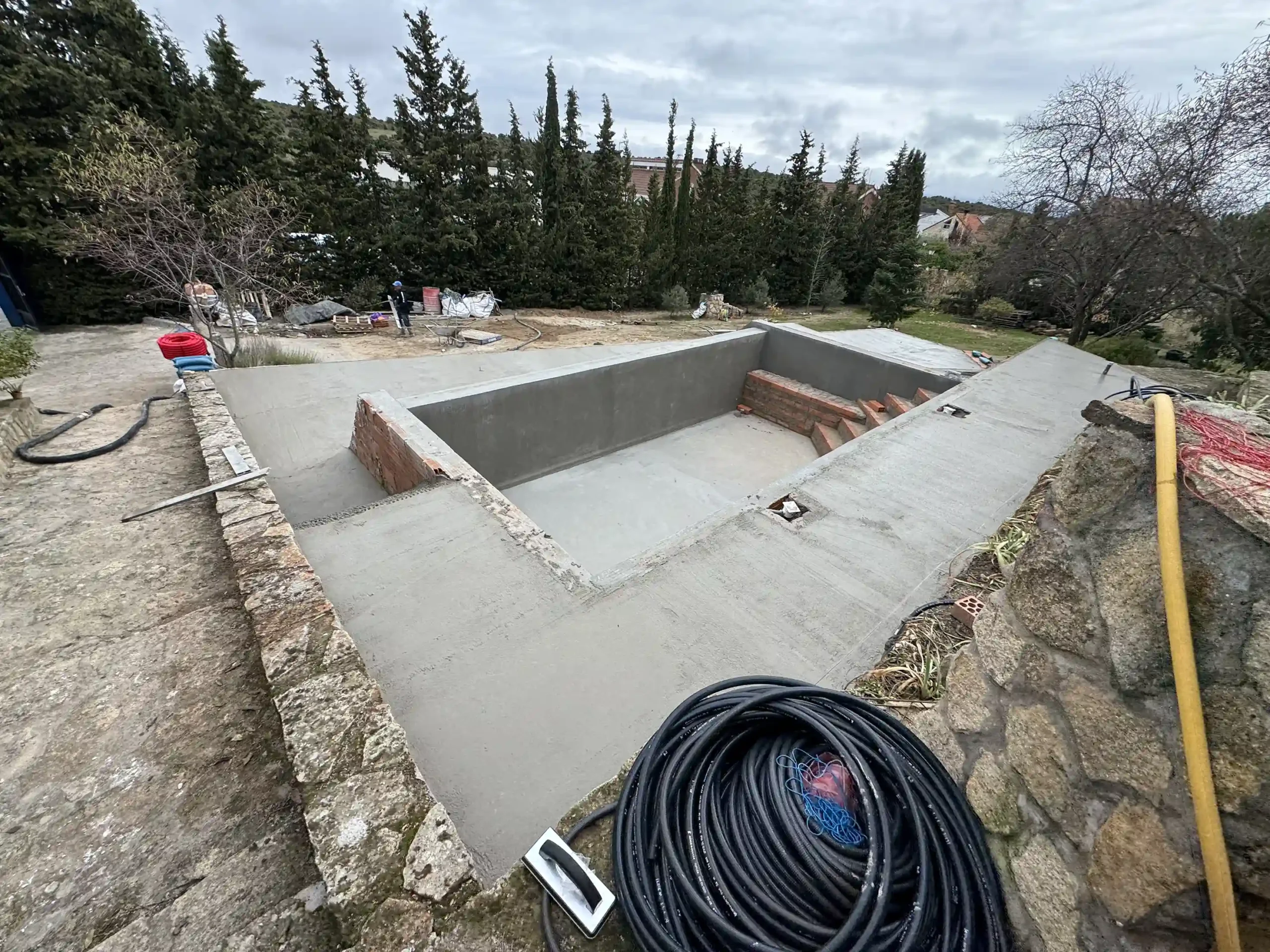 Todo empieza con un replanteo técnico preciso, adaptado a la topografía real de la parcela. No se trata solo de marcar una piscina en el terreno, sino de estudiar cotas, visuales y encajes con la vivienda. La excavación se ejecuta de forma estratégica, teniendo en cuenta drenajes, estabilidad del terreno y la correcta implantación del vaso y del sistema infinity. El mayor reto fue aprovechar la pendiente natural del terreno para convertirla en una ventaja, integrando la piscina en el conjunto arquitectónico y generando continuidad visual con el entorno.