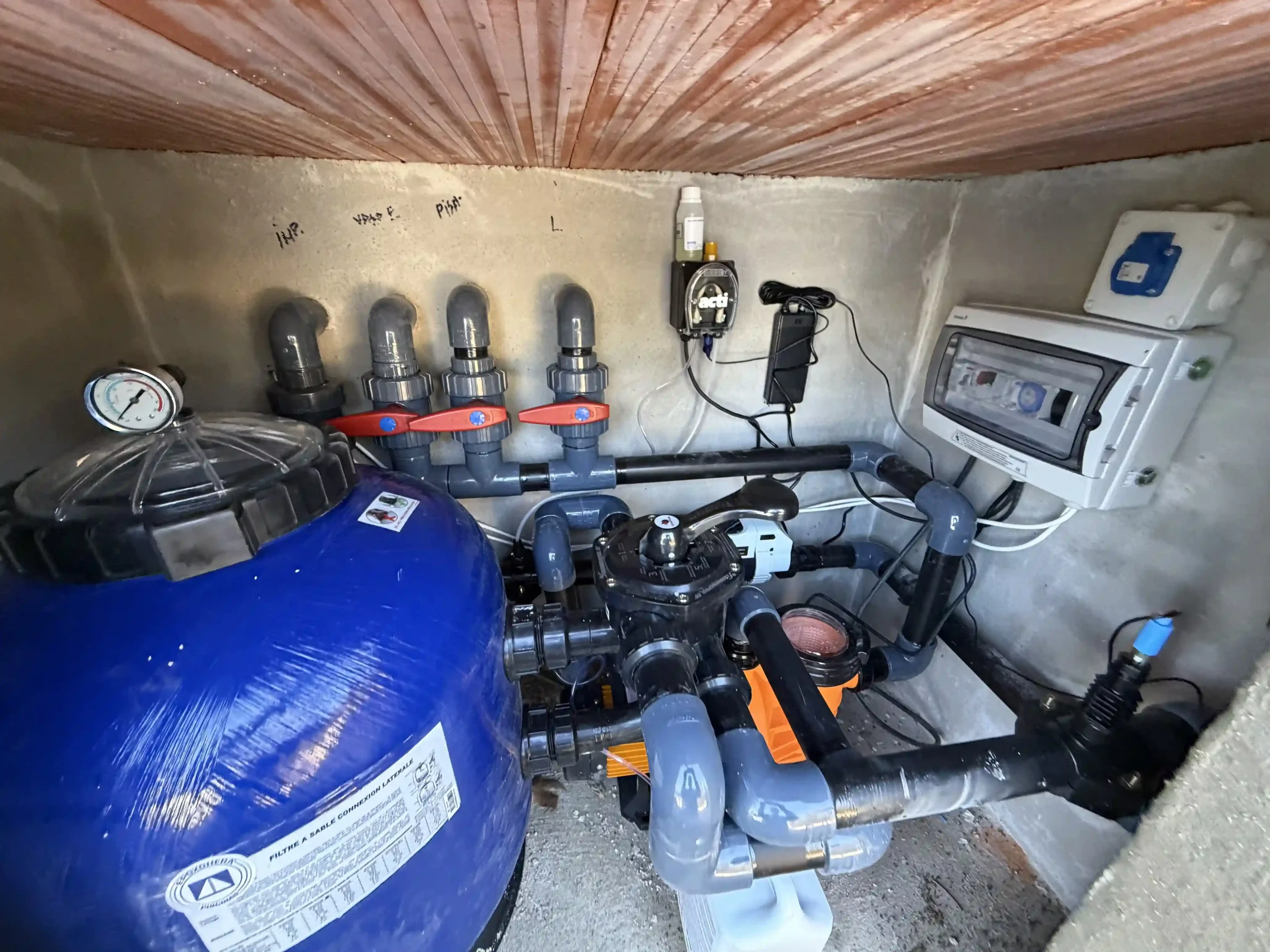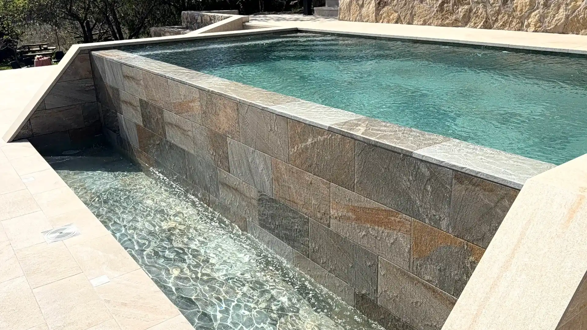 Se proyecta y ejecuta una piscina de 6,00 x 3,00 metros con sistema de piscina infinita y vaso de compensación, adaptada a la topografía del terreno. La piscina se ejecuta mediante hormigón proyectado (gunitado), garantizando una estructura sólida, duradera y preparada para soportar las exigencias de una piscina desbordante. Se integra el vaso de compensación infinity, clave para mantener el nivel constante del agua y asegurar un desbordamiento uniforme.