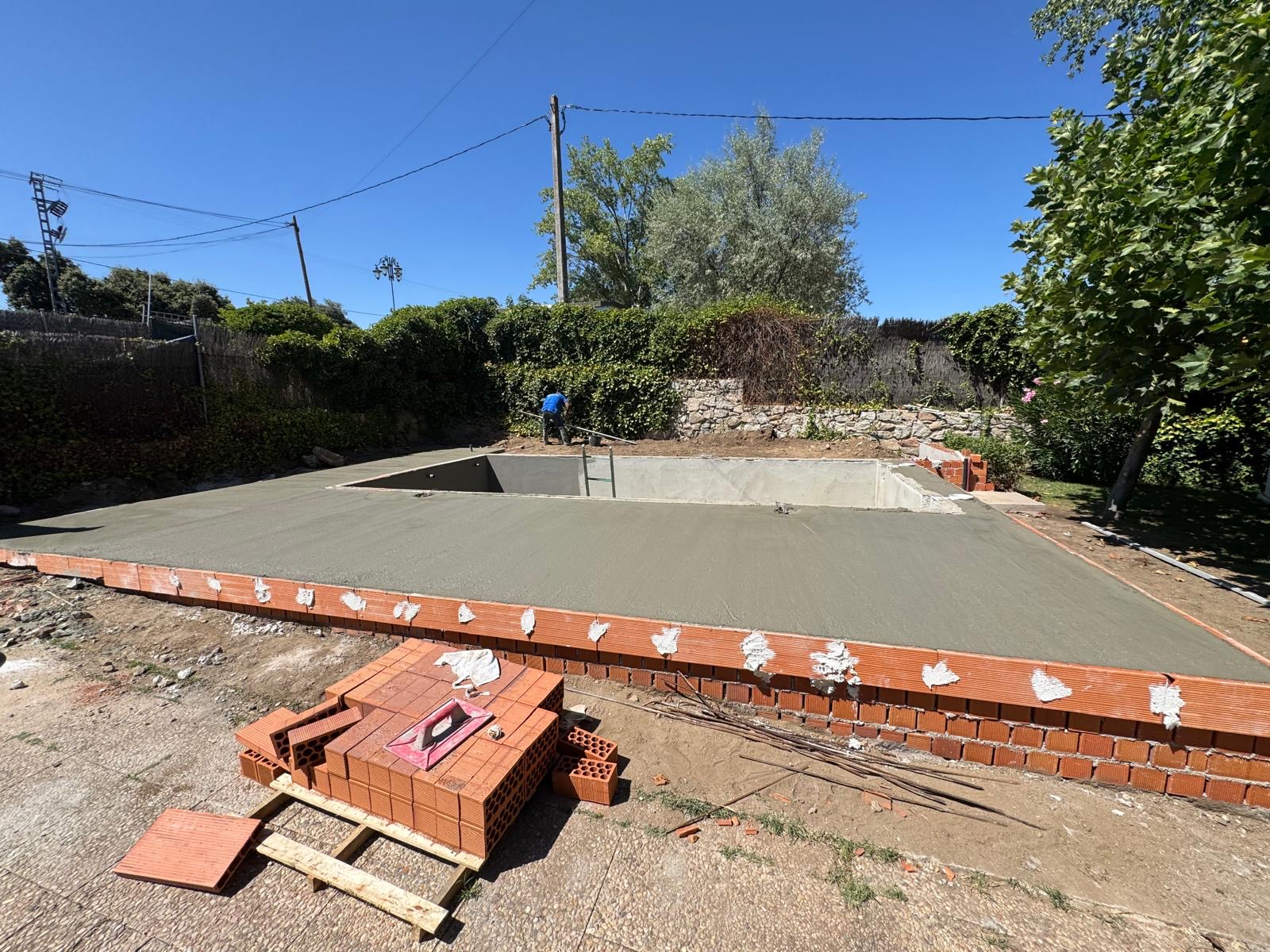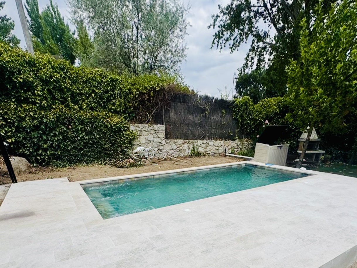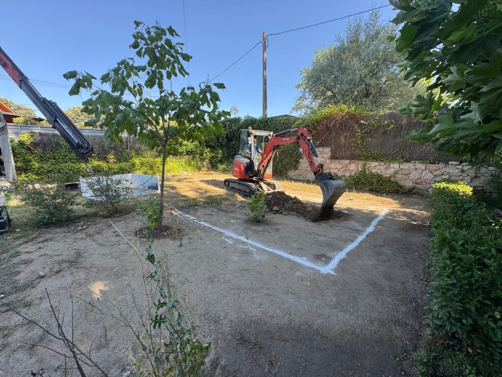 En 2025 ejecutamos este proyecto de construcción de piscina de obra en Colmenar del Arroyo, en una finca privada con espacio exterior amplio que permitía diseñar no solo la piscina, sino también todo el entorno que la acompaña.