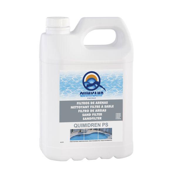 DESINCRUSTRANTE REGENERADOR ARENAS. Añadir 5 litros de QUIMIDREN PS en el filtro de arena de hasta 50 m³. Dejar la instalación cerrada mínimo 48 horas. Lo idóneo es usar este producto durante el invernaje dejando la instalación cerrada.